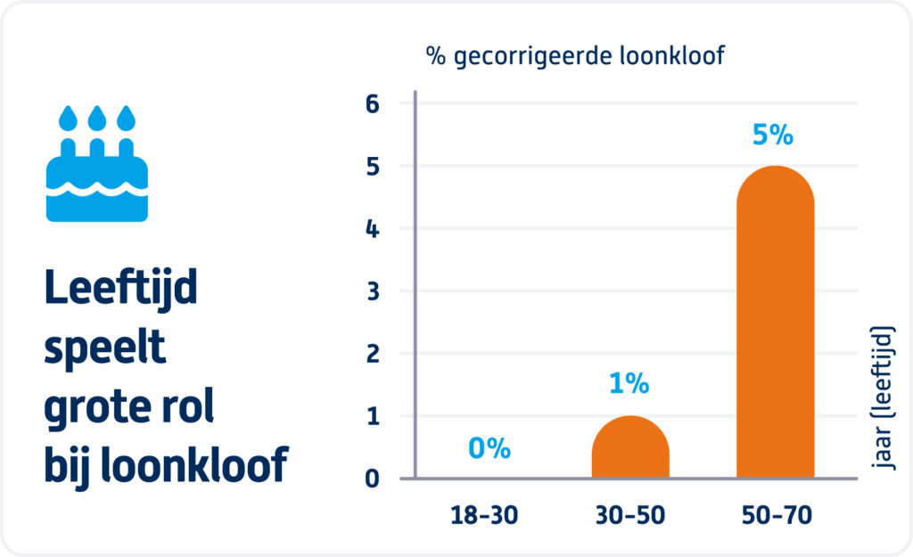 Opvallend is dat de gecorrigeerde loonkloof sterk toeneemt met de leeftijd. Bij werknemers van 18-30 jaar is er geen significante gecorrigeerde loonkloof zichtbaar, maar deze loopt op tot 5% in de leeftijdsgroep 50-70 jaar. “Mannen van 50 tot 70 jaar werken gemiddeld 34,4 uur per week, vrouwen 28,2 uur. De loonkloof is hierop gecorrigeerd, maar het kan wel zijn dat werkgevers mannen hierdoor een hoger salaris hebben geboden,” zegt Jade Karthaus, hoofdredacteur bij MKB Servicedesk. “Ook kan het zijn dat de loonkloof bij de mannen en vrouwen in deze leeftijdscategorie al jaren geleden is opgebouwd, bijvoorbeeld door verschillen in startsalaris.”
