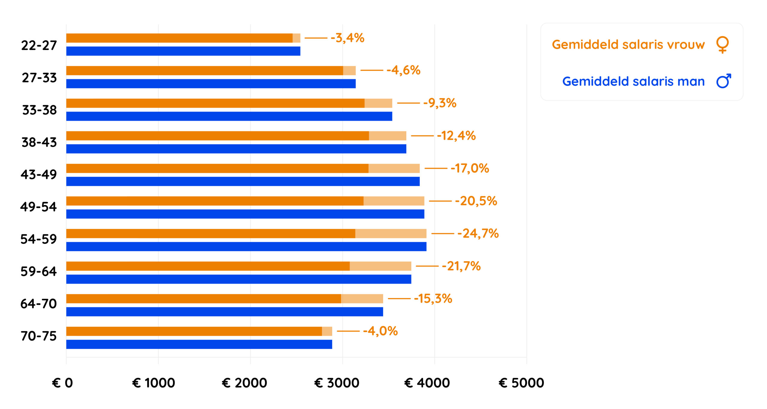 Dat blijkt uit ons onderzoek in samenwerking met Van Spaendonck Groep, op basis van 1,4 miljoen geanonimiseerde loonstroken uit Loket.nl. In dit onderzoek is er gecorrigeerd voor leeftijd en werkervaring. Het verschil in beloning is hier dus niet door te verklaren.